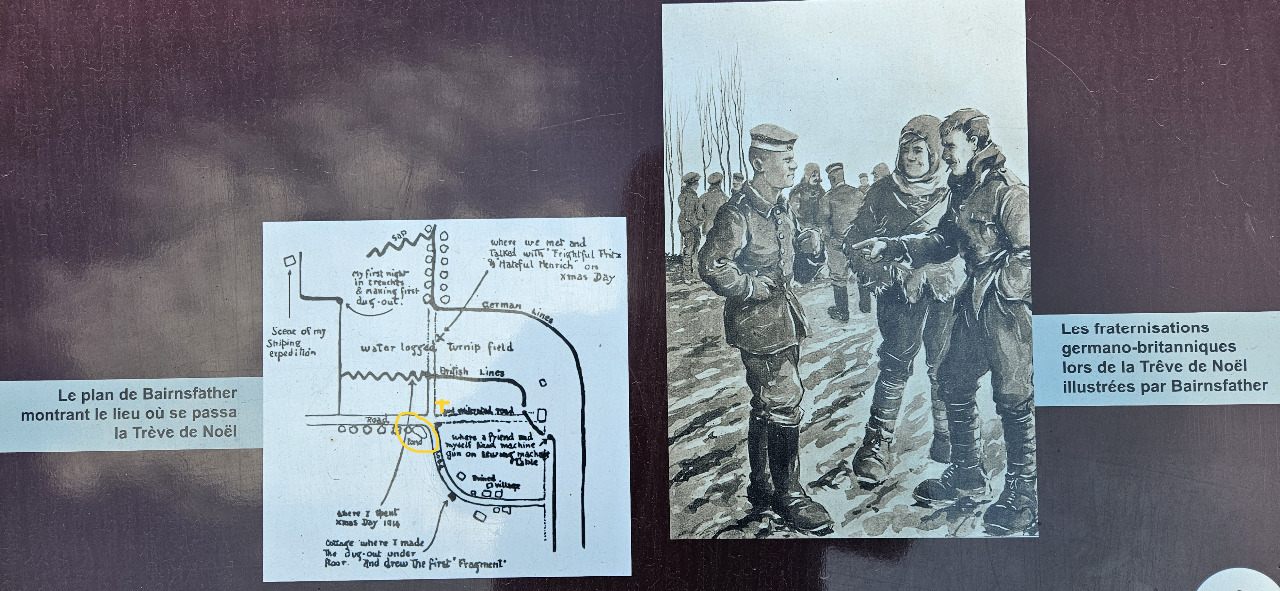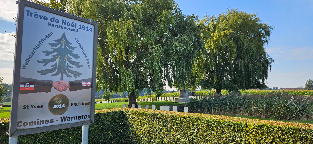 Ach ja, England. Das war auch einer der Bewegungsgründe für diesen Trip, denn da gab es in der ersten Kriegsweihnacht 1914 dieses wundersame Ereignis, welcher den Widerspruch dieses Krieges wiederspiegelt, der sogenannte Weihnachtsfrieden. Da ich ja sehr, sehr interessiert bin an Geschichte, wollte ich da immer mal hin, in die Gegend von Mesen. Nun, an diesem Weihnachten gab es jenes Schauspiel, das die Hauptquartiere beider Seiten später nur mit dürren Worten kommentierten, es kam zu einem inoffiziellen Waffenstillstand. Die Front war schleichend schon in den Stellungskrieg übergegangen und keiner weiß es noch genau, auf unterster Ebene eingte man sich auf diese Zeit. In manchen Frontabschnitten ging es nur um ein paar Stunden, anderswo gar eine ganze Woche.