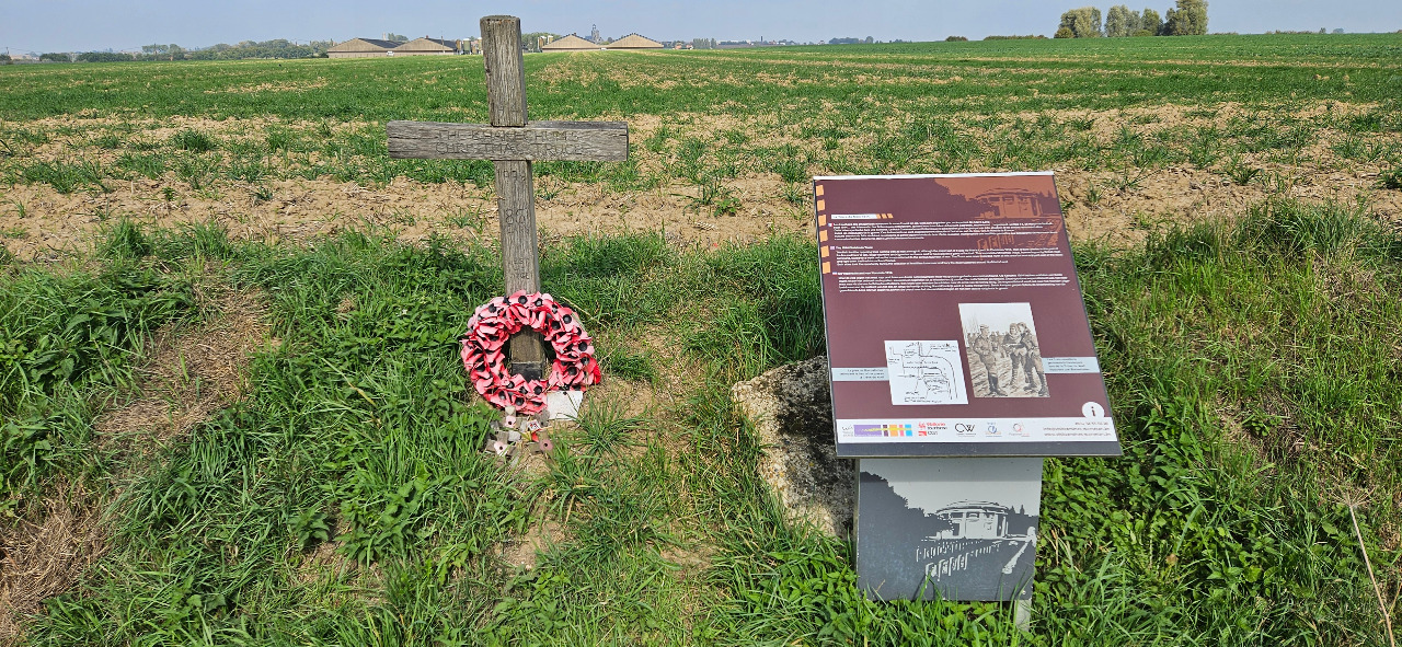 Die ehemalige Frontlinie ist übersät mit Friedhöfen. Unmittelbar neben der Gedenkstätte gibt es diesen britischen Cemetary, der aber auch einige deutsche Gefallene beherbergt. Das Schilf auf der rechten Seite ist ein kleiner Tümpel, ein "pond".