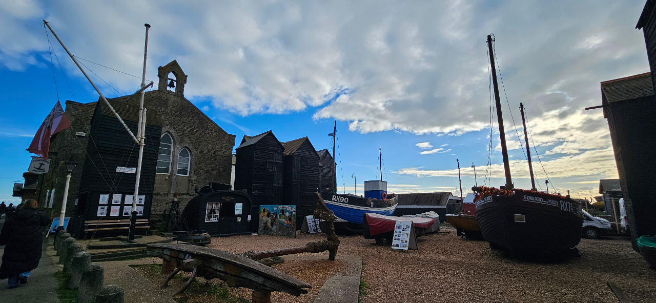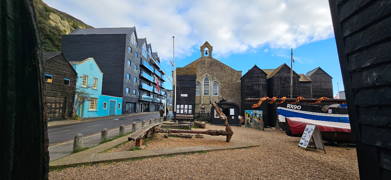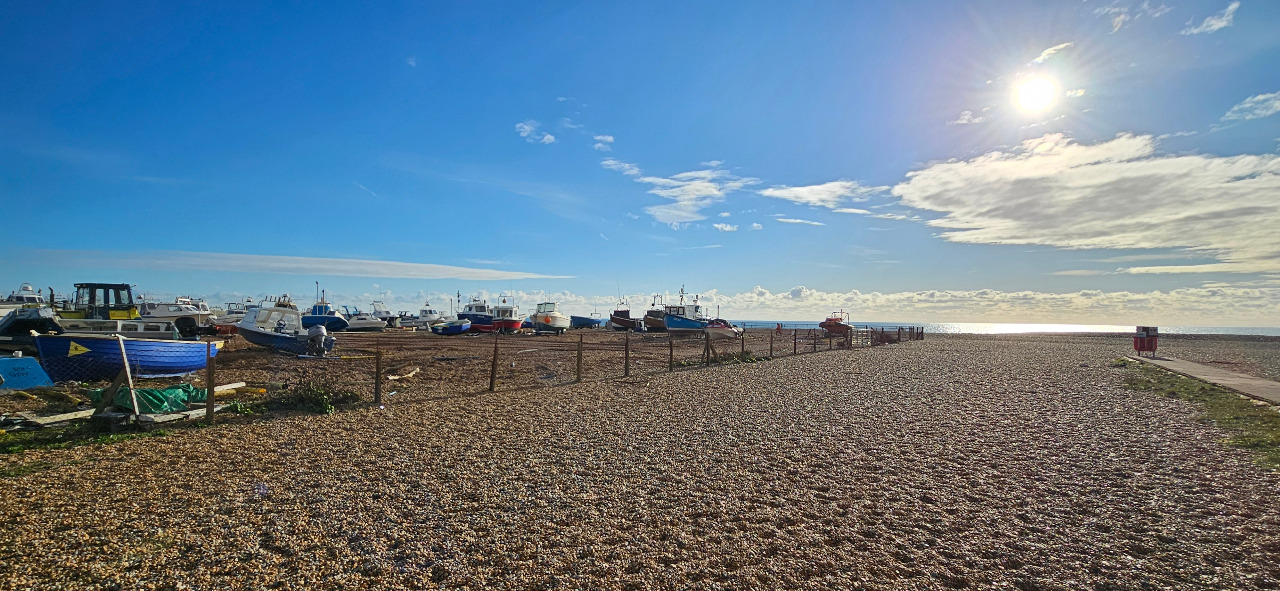 Hastings besitzt keinen klassischen Hafen. Die Fischerboote werden daher immer an Land gezogen. Wenn die Flut kommt, ist der Strand relativ schmal. Dann wird das Auslegen der Fischernetze zum Problem. Diese müssen nämlich immer wieder getrocknet und repariert werden.