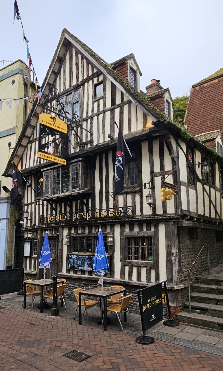 Der Pub "olde pump" ist eine Augenweide und deshalb immer gut besucht. Seit ungefähr 1600 gibt es dieses wunderschöne Gebäude schon. Eine gewisse Zeit lang war es ein Schuhladen, aber die meiste Zeit dann doch eine Schänke. Was hat dieses Gebäude aller "erlebt", die französische Brandschatzung im 17. Jahrhundert, es war Treffpunkt der Schmuggler und Strandpiraten, die deutschen Bombenangriffe des zweiten Weltkrieges. So entwickelte sich "ye olde pump house" zum Eyecatcher der George Street.