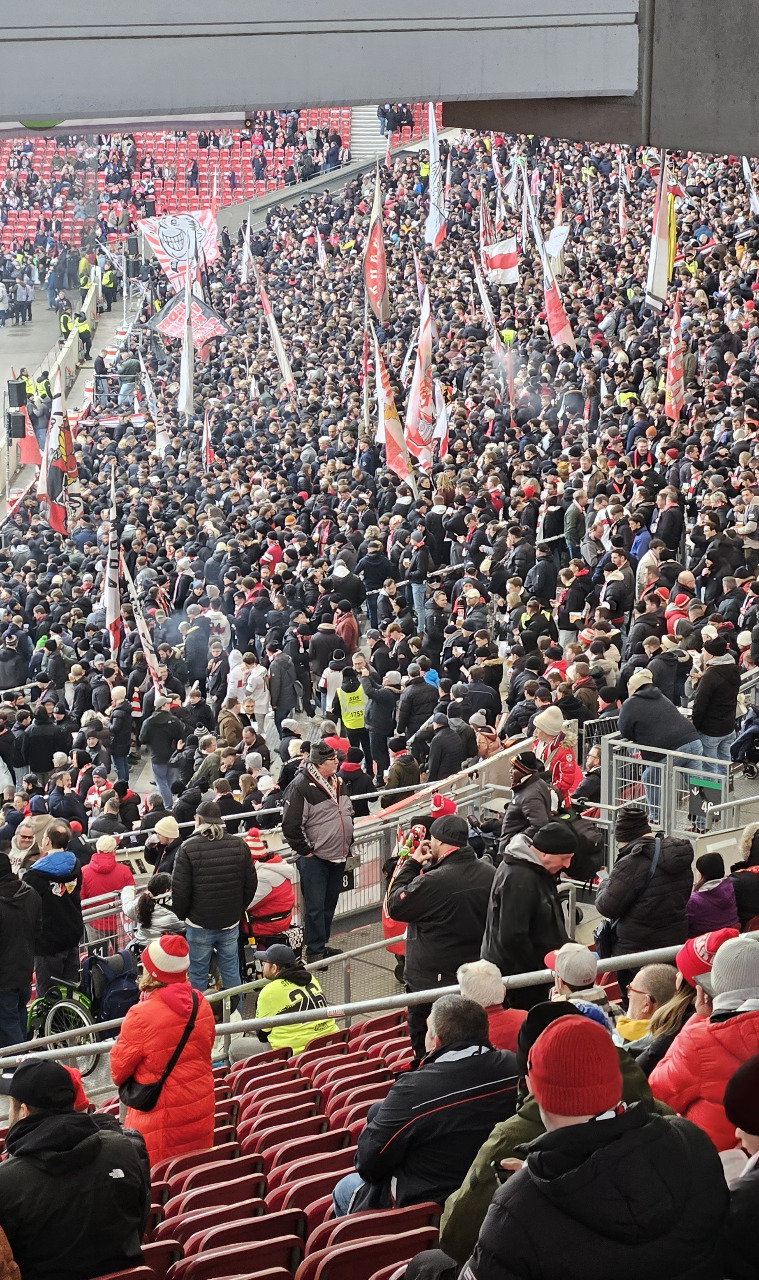 14.50 Uhr. Das Stadion füllt sich, die Cannstatter Kurve ist schon bereit.