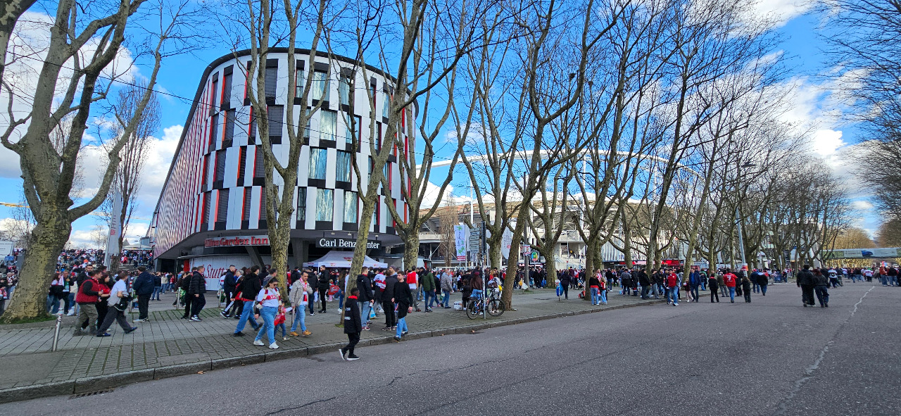 Natürlich gibt es viele Wege zum Stadion. Ich bevorzuge zum Spiel den Spaziergang über den Wasen. Keine Menschenmassen und man kann das ständige Bewegung auf dem Veranstaltungsgelände beobachten. Woche für Woche tut sich was.