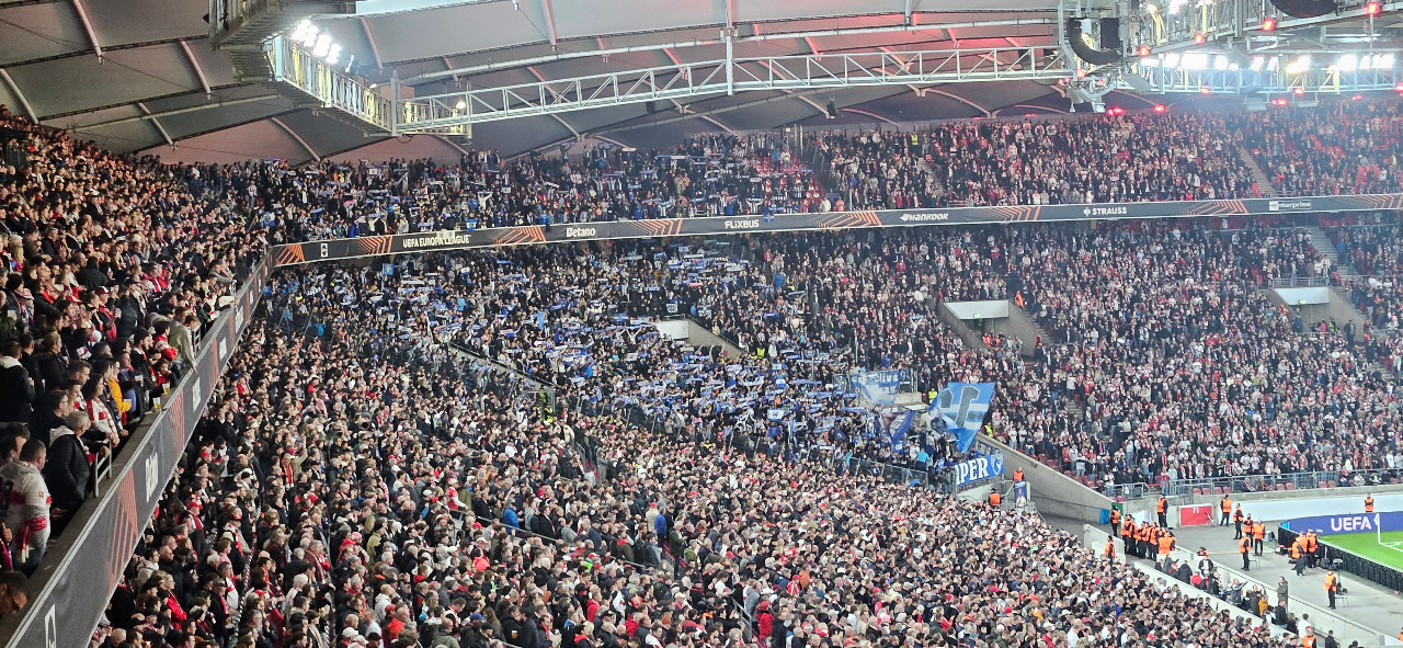 Durchatmen. Nach dem Seitenwechsel der VfB dominanter, Porto bemühte sich nicht mehr um einen weiteren Treffer. Stattdessen dieses höchst unsportliche Zeitspiel, welches der Schiedsrichter nicht energisch unterband. Das spielte den Portugiesen in die Karten und endlich, in der 70. Minute bebte der Ground, Ausgleich. Ich persönlich jubele schon nur noch vorsichtig, ich warte immer erst an Anstoß ab. Und siehe da, der VAR wurde wieder fündig. Tor aberkannt, wegen Abseitsstellung von Tomas. Seltsamerweise war das der Bruch im Spiel der Hausherren, der Ground ergab sich, die Stimmung flaute ab. Und siehe da, Porto hatte urplötzlich noch Chancen auf das dritte Tor. Nübel aber erledigte seinen Job und es blieb beim 1:2.