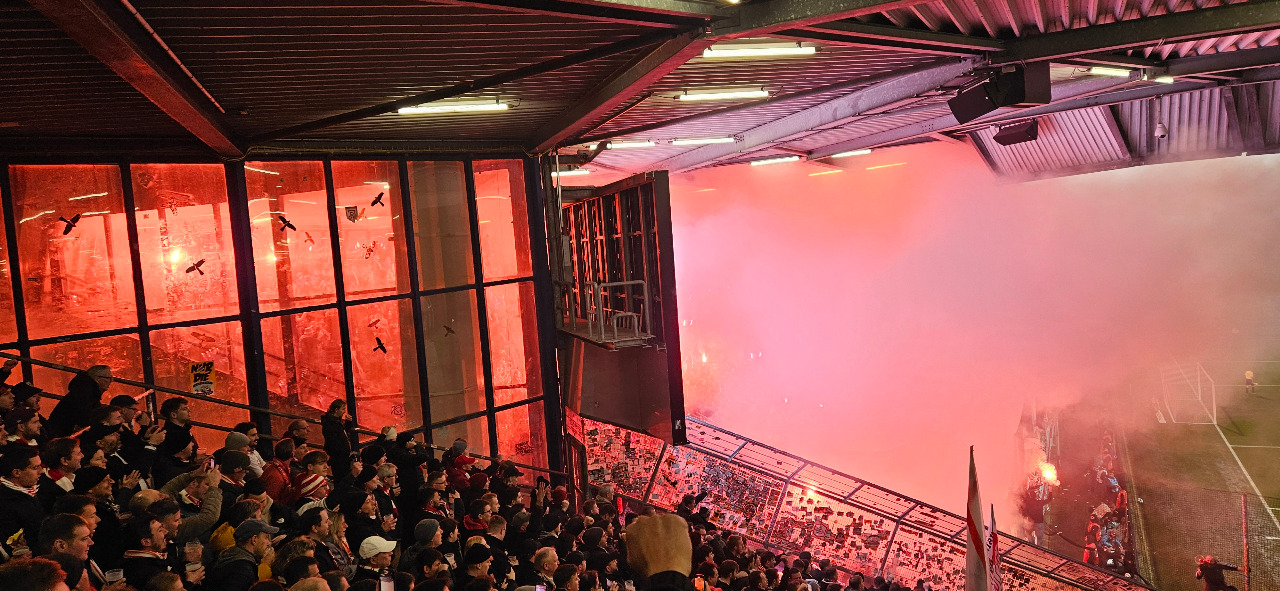Das bisschen Pyro zu Beginn der ersten Halbzeit war pillepalle. Der Anpfiff zur zweiten Hälfte verzögerte sich um rund sieben Minuten. Ich persönlich rechnete mit einem Abgang der Teams in die Kabinen, aber der Schiedsrichter blieb erstaunlich gelassen. Ich gehe davon aus, die Strafe wird heftig werden.