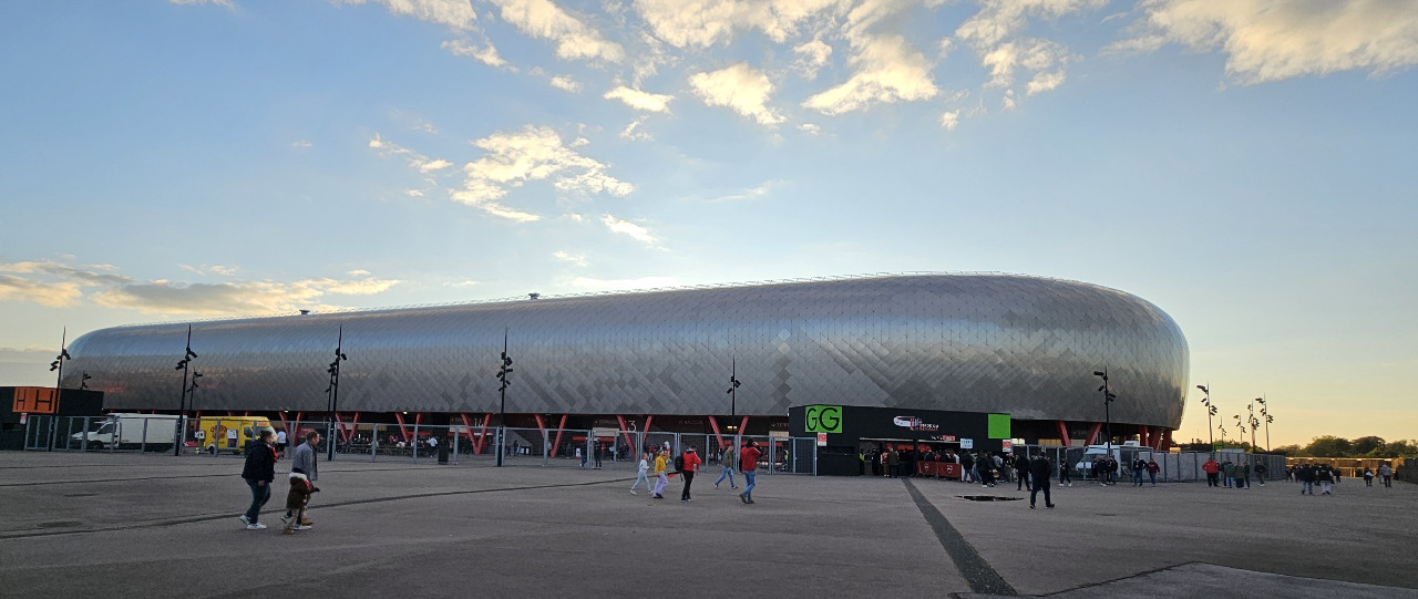 Der Reihe nach. Um 16.30 Uhr war ich endlich da, in meinem Hotel etwas außerhalb von Valenciennes. Über sechs Stunden unterwegs, unterbrochen nur durch eine halbstündige Pause. Und dann machte ich mich auf, auf ins Stadion Stade du Hainut. Natürlich habe ich mich vorher informiert, es soll ja ein modernes Ding sein. Aber das? Es sieht so was von abgeschleckt und futuristisch aus, es hat nichts, in das man sich verlieben kann. Es sieht aus wie ein gestrandeter Wahl, das hätte man doch besser lösen können.