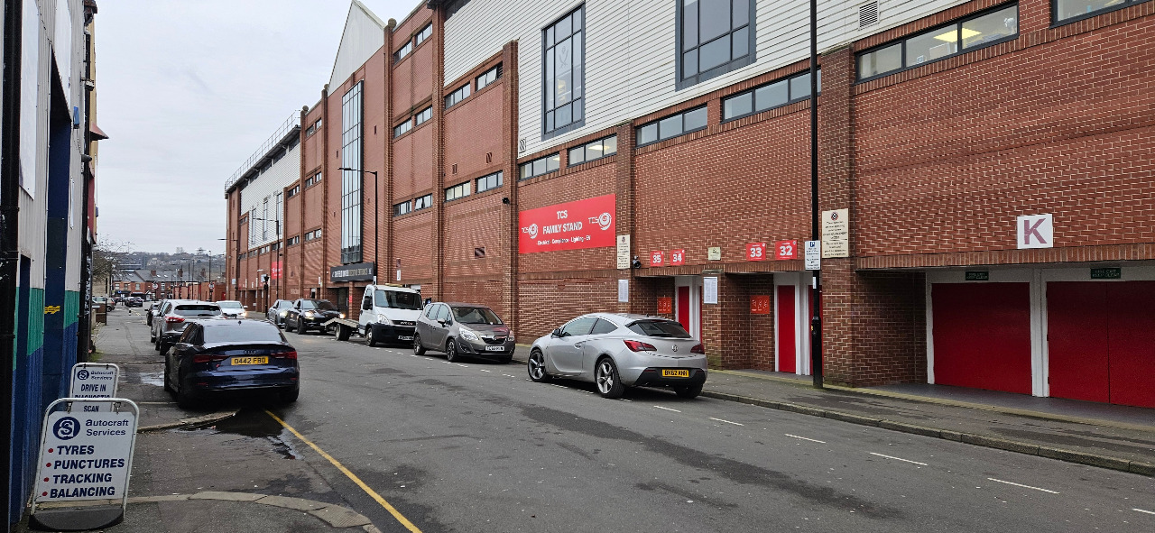 Der Weg entlang der John Street zeigt das typische englische Stadionbild. Am Spieltag herrscht hier natürlich Parkverbot.