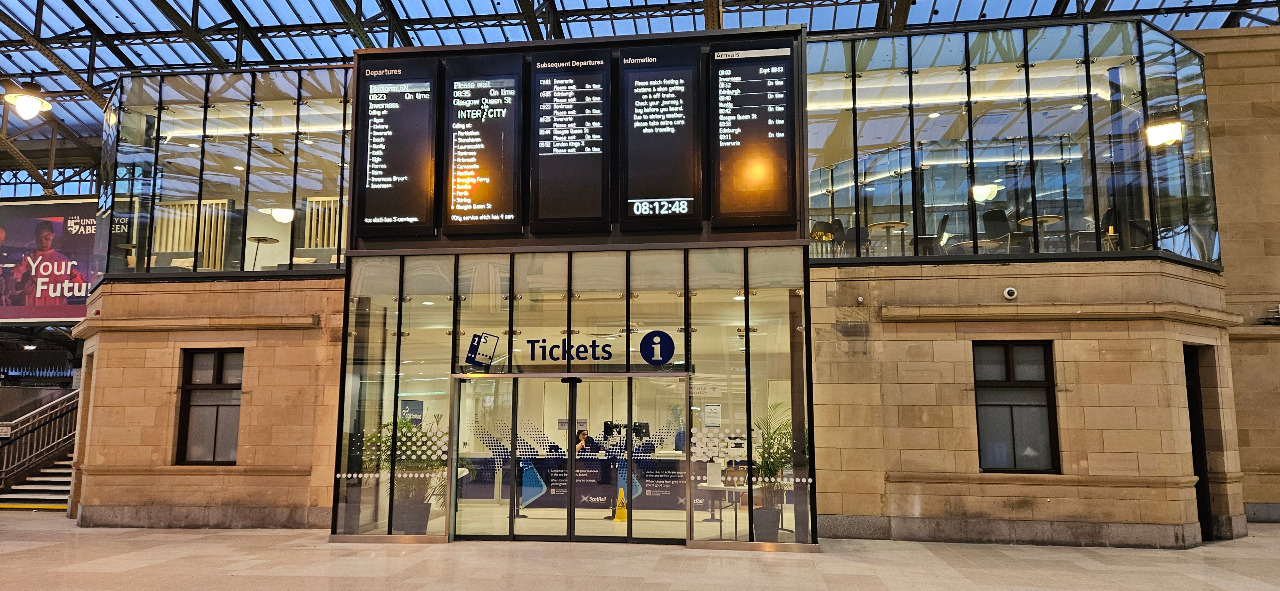 Dagegen wirkt der Bahnhof wie eine erfrischende Sensation. Vor rund zehn Jahren komplett neu renoviert und in hellen Farben gehalten. Selbst am frühen Morgen ein Lichtblick. Rückflug war ab Airport Edinburgh. Dazu musste ich 1x umsteigen, im Bahnhof Haymarket dann raus und mit der Strampel zum Flughafen.